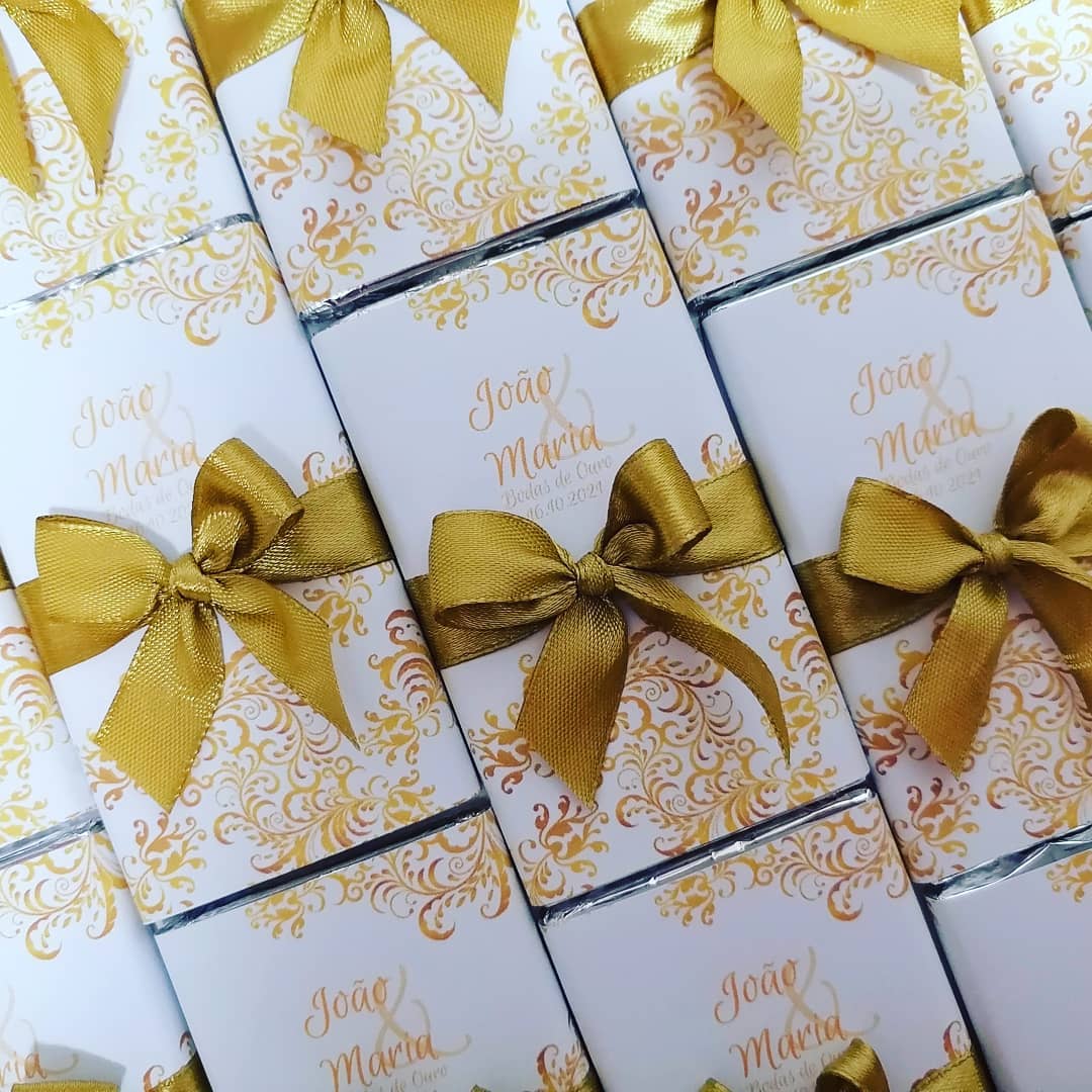Produtos neste artigo >> Lembranças Bodas de Ouro - Mini Chocolates 20gr personalizados