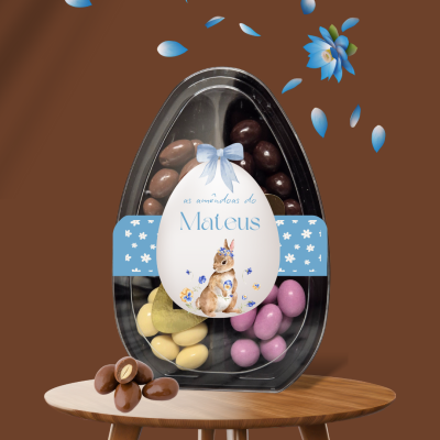 Caixa de Amêndoas formato Ovo Personalizada com Nome do Afilhado