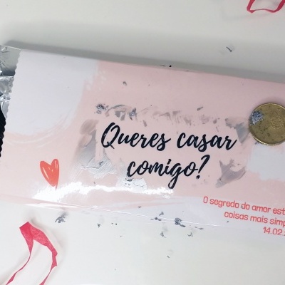 - Ao raspar a área cinza (raspadinha) aparece o pedido de casamento (frente)