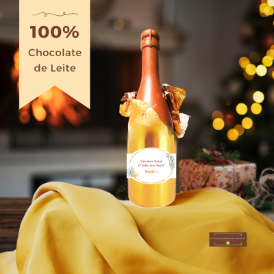 Este Natal, surpreenda os colaboradores, clientes ou fornecedores da sua empresa com uma grande e deliciosa garrafa 100% chocolate de Leite com um rótulo personalizado com votos de Feliz Natal e o logotipo.