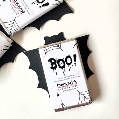 Celebre o Halloween com os nossos Mini Chocolates Morcego, perfeitos para tornar esta época ainda mais especial. Cada chocolate vem envolvido num divertido design de morcego, proporcionando uma experiência assustadoramente deliciosa.