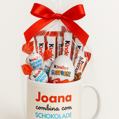 Caneca Kinder Personalizada com Nome e 18 Chocolates no interior